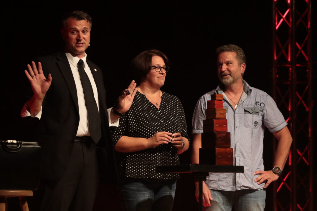 Ein lustiges dem Anlass angepasstem Programm wo das Brautpaar und die Gäste auf der Bühne helfen dürfen. Es werden verblüffende Kunststücke gezeigt. Je nach größe der Veranstaltung ist diese Form der Darbietung auf der Fläche vor allen oder auf eigener Bühne gut geeignet. der perfekte Zeitpunkt für die Die ca. 30 minütige Show ist nach dem Hauptgang. Gerne passe ich mich an Ihren Ablauf an und wir können individuell den Ablauf besprechen.